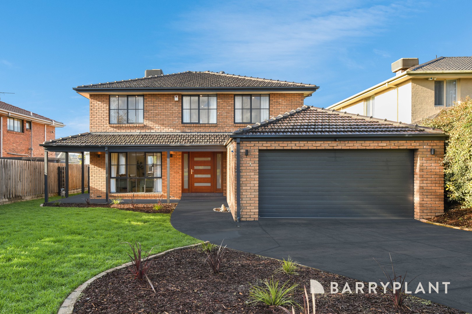 Reflecting late 20th-century brick veneer design, the residence features warm brickwork, a practical two-storey layout and large aluminium windows that invite natural light. A forward-set double garage, broad driveway, verandah and low-maintenance gardens create a tidy, functional and welcoming street presence.
