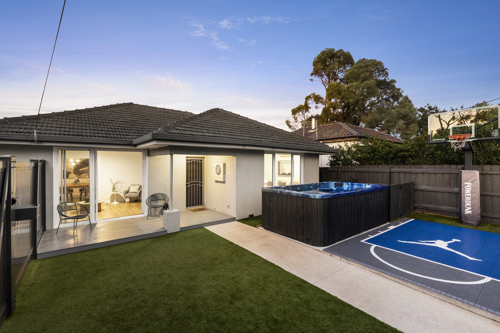 The outdoor space is equally impressive, featuring a thoughtfully designed entertaining area with a low-maintenance deck, a full-sized basketball key, and a swim spa, offering the perfect balance of relaxation and recreation for the whole family. Secure fencing and gated entry ensure complete privacy, while an additional on-title parking space complements the remote-access garage securely tucked away at the rear of the property. Comfort is ensured year-round with ducted heating, multiple split systems and double glazing, while excellent storage options enhance the overall functionality of the home.