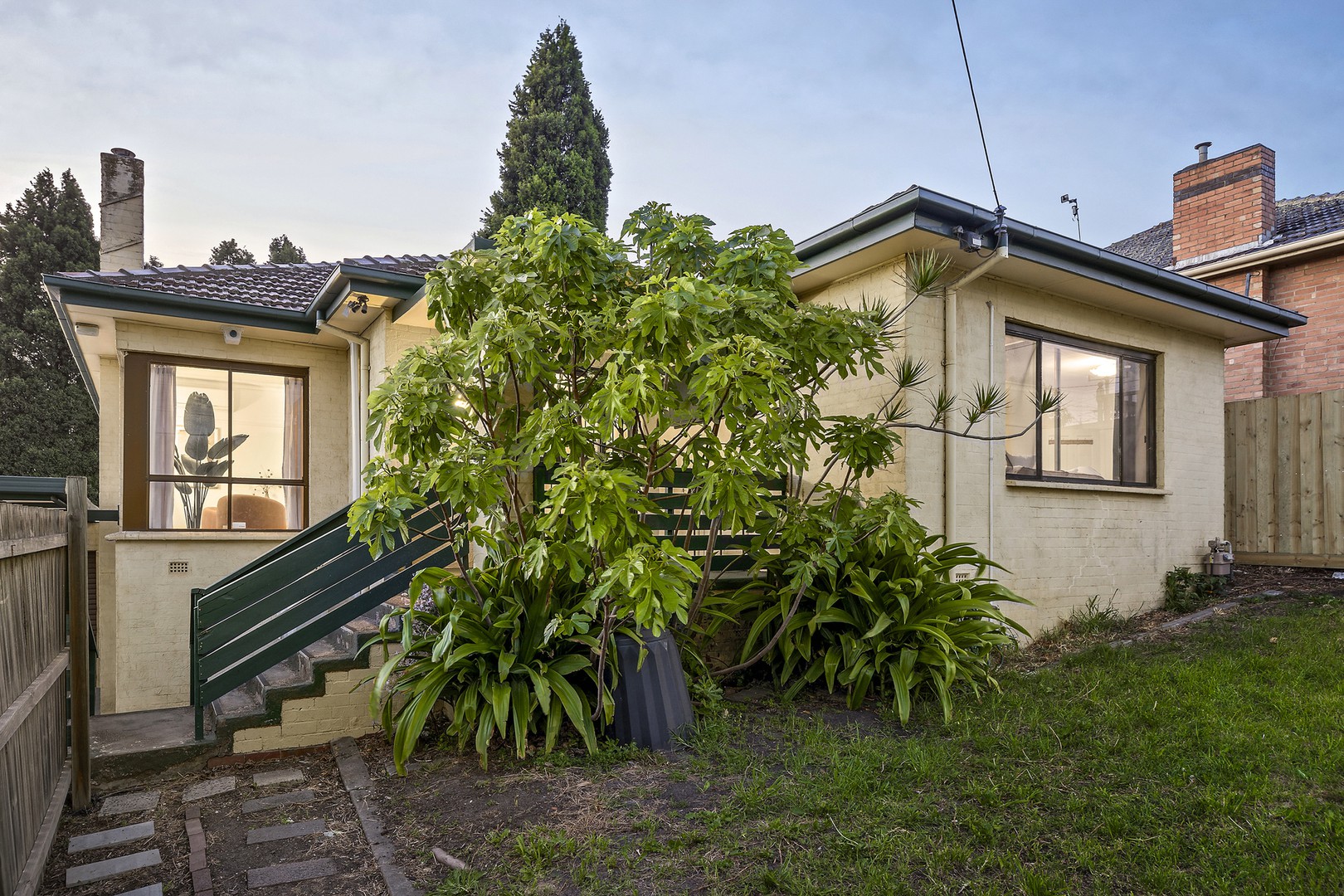 A triple-fronted east-facing entry with deep front gardens provides a fantastic