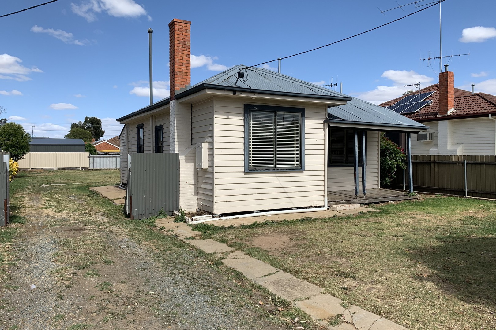 This weather board home set on a large block is close to the CBD and local shopping strip. Featuring as new carpet throughout, three bedrooms (no BIR), an open plan kitchen/Dining/Lounge with electric cooking, gas heating and Air Conditioning. The bathroom has a shower over the bath. Large size backyard.