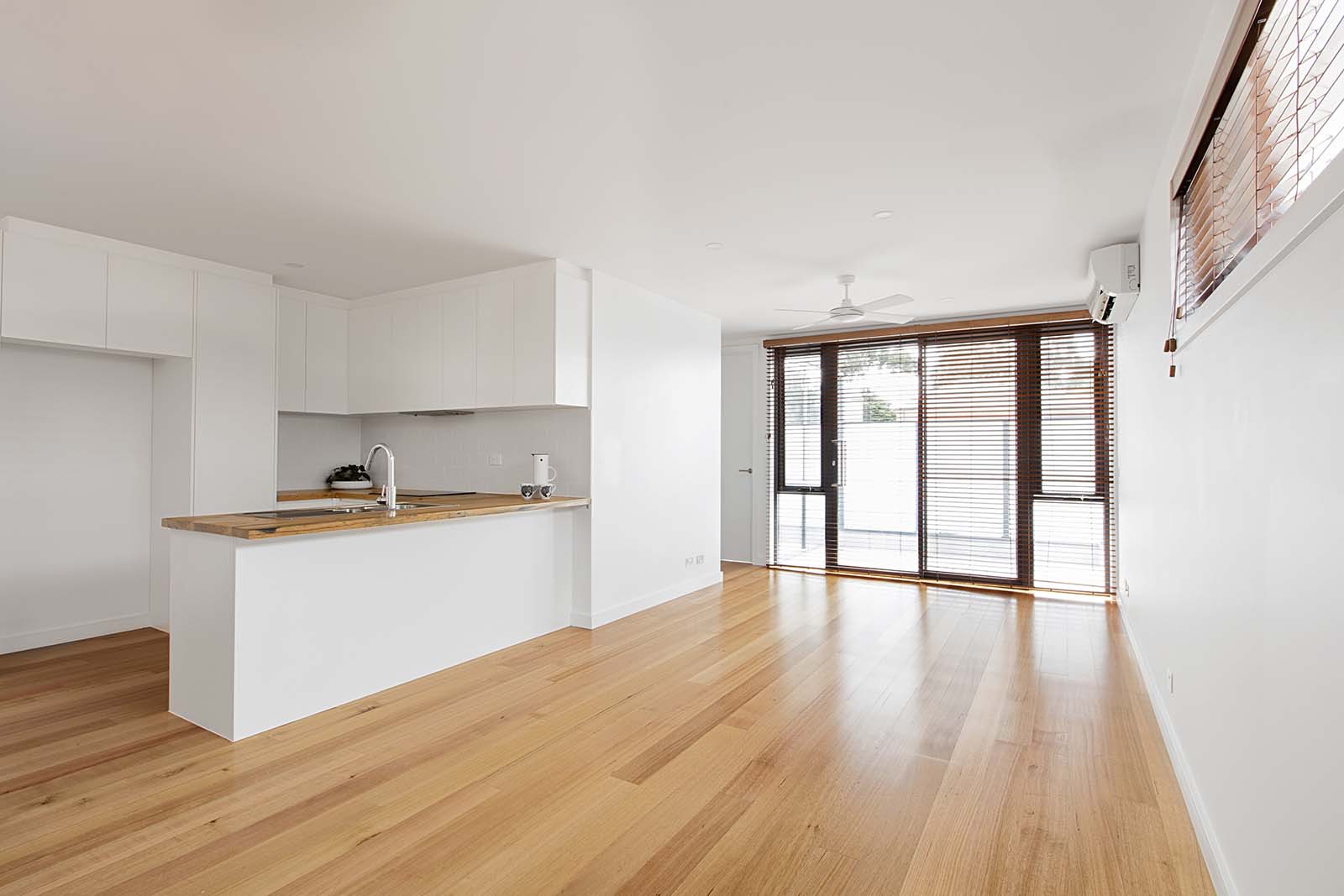 The 86 SQM apartment plus an 8 sqm balcony apartment boasts wooden floor boards in the generous living area, modern kitchen bathed in natural light, featuring recycled timber bench tops, plus quality kitchen appliances. All bedrooms have 100% wool carpet, spacious mirrored built in robes and stylish modern bathrooms. Private entertaining areas, undercover remote access car space, individual storage cages, bike racks, lift access, secure entry foyer and communal garden for the entire complex to share.