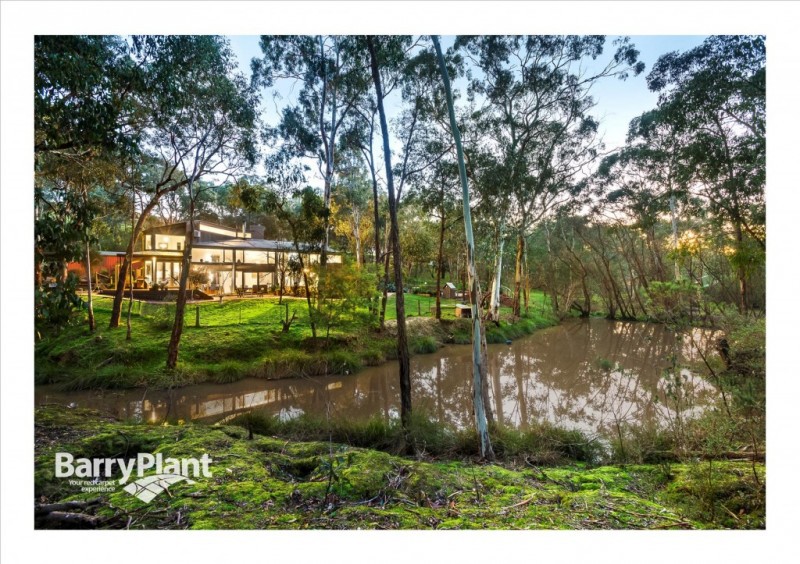 Delivering a unique design concept by architect Max May, this awe-inspiring home on approximately 5 acres immerses you in beautiful bush surrounds. Showcasing freshly polished timber floors, soaring high ceilings, exposed timbers and huge picture windows, the flexible floor plan begins with a vast living/dining zone with wood combustion fire and double height ceiling, cosy lounge with mezzanine, and a beautiful updated kitchen/meals zone boasting stone benchtops, 900mm stainless steel cooker and sleek white cabinetry. There are also 4 bedrooms (master with modern ensuite), family spa bathroom, open study and flexible cellar space ideal for wine storage, gymnasium or something else. Outside, a beautiful house garden blends seamlessly with the surrounding bushland, creating a haven for native birds and wildlife. There are a choice of alfresco entertaining spaces, lagoon-style in-ground swimming pool and a good stretch of level usable land. Finishing touches include split system heating/cooling, wood shed, 2-car garage/workshop, water tank and garden irrigation. Only a stone's throw from Wattle Glen primary school and train station, this home will appeal to design enthusiasts and those dreaming of a relaxed tree-change.