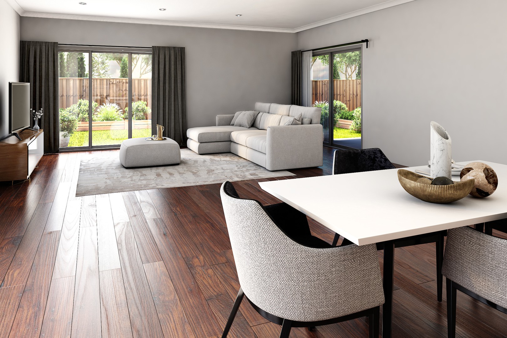• Elegant combination of engineered laminate timber flooring in the living areas and plush carpets in the bedrooms