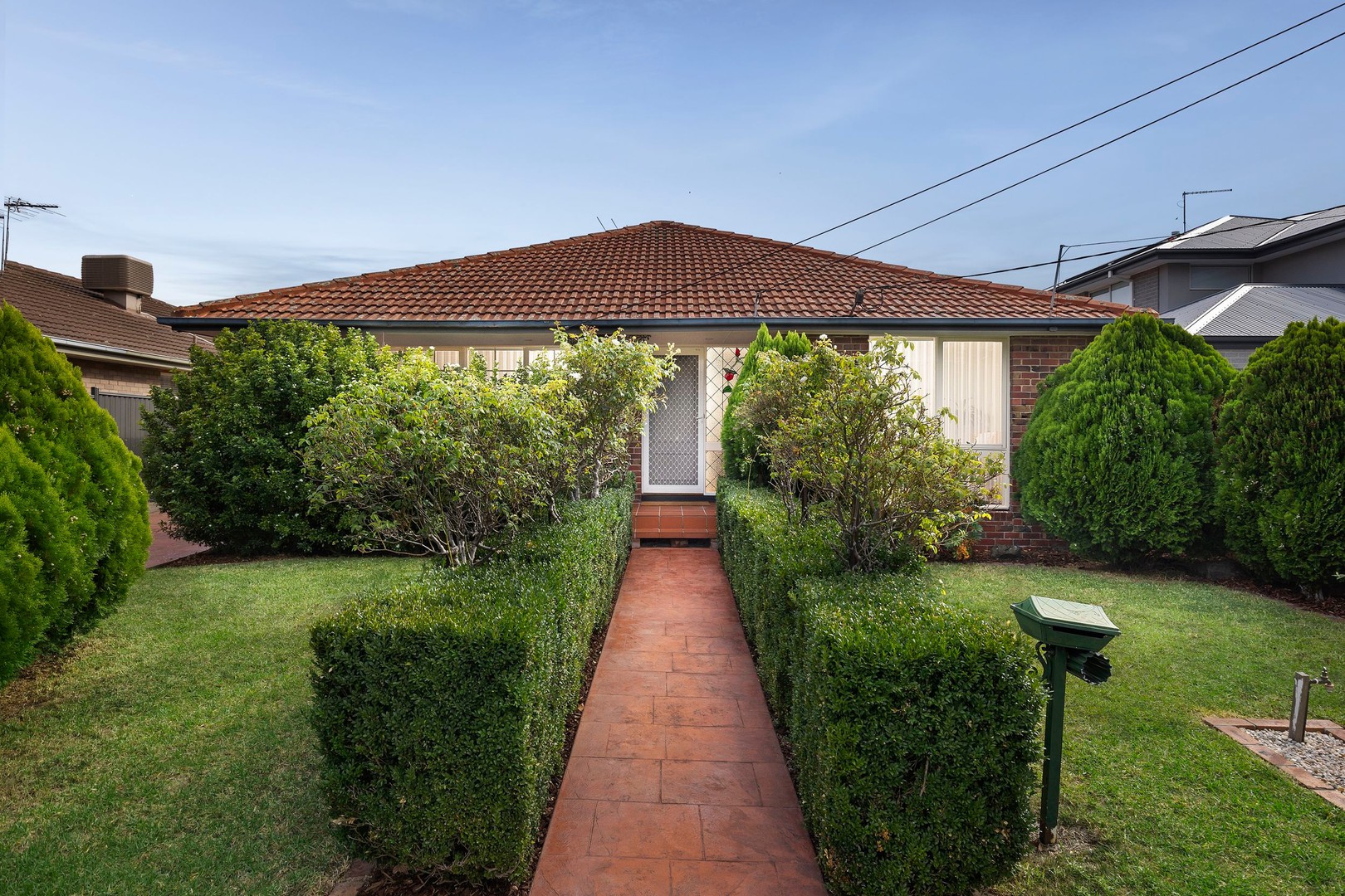 Three well-proportioned bedrooms with built-in robes provide comfortable accommodation. A pristine central bathroom, separate laundry with storage, and an additional toilet add to the home’s functionality. Additional features include ducted heating and cooling, rainwater tanks, and manicured gardens bathed in northern sunshine.