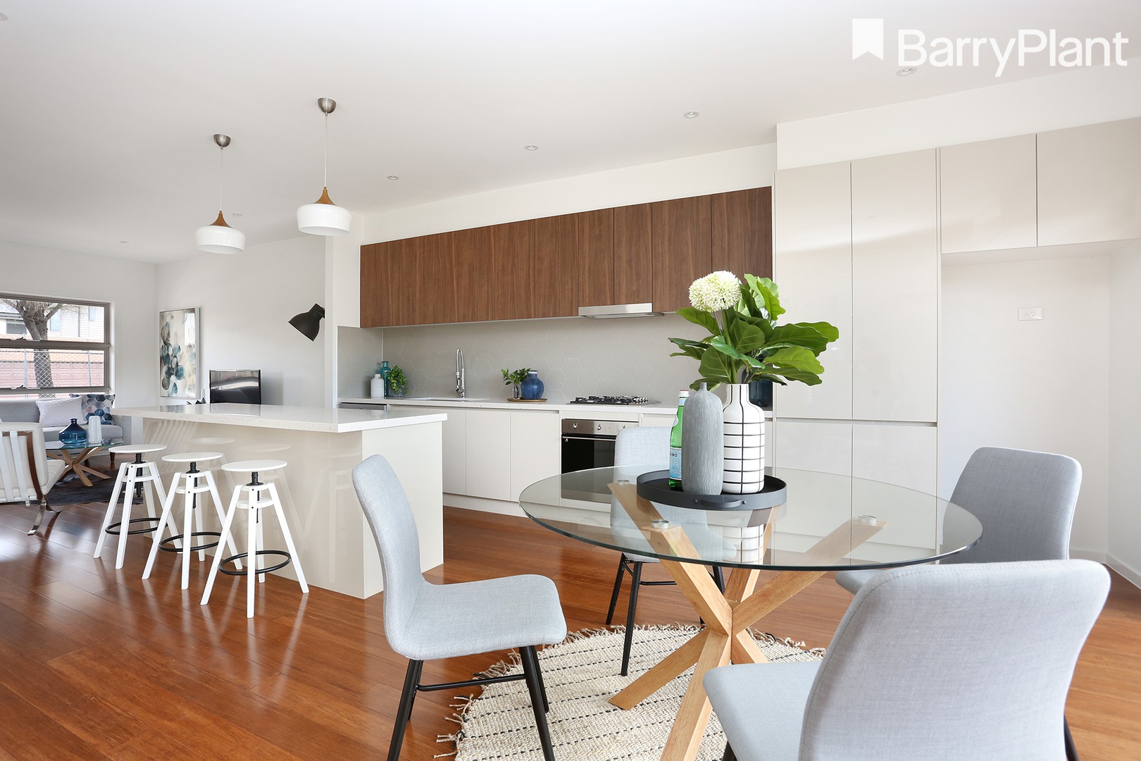 The light-filled and luxurious interior comprises 3 spacious bedrooms all with built-in robes, stylish central bathroom and two additional powder rooms, expansive open design living and dining enhanced by a great kitchen with stone benchtops, Smeg appliances, dishwasher and tiled splash backs.