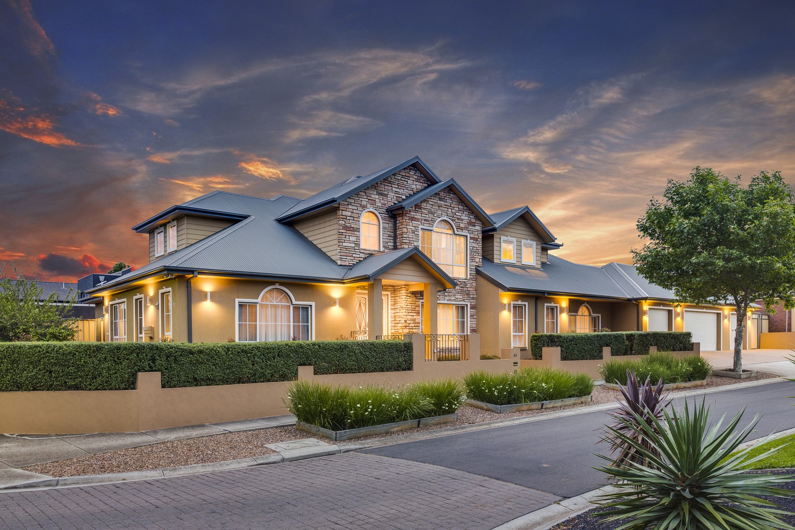Every premium expectation is exceeded and every luxurious desire is achieved when you step inside this stunning American inspired mansion, graciously commanding The Regency on approx. 1000sqm. Lashings of exquisite Messmate hardwood timber lines the floors, an eye catching contrast to the soaring ceilings and grand accommodation this family home offers. Invite your guests to share the beauty of the spacious living and formal dining room, monumental world class kitchen with granite benchtops, walk in butler's pantry and European Falcone cooktop/oven, a statement centrepiece for the host, accompanied by a substantial meals and family area with gas log fire flowing into the dedicated home theatre room and rumpus room with built in bar. For fine entertainment, your guests will love the spacious undercover alfresco area and a sparkling solar heated/ salt chlorinated swimming pool, with lovely landscaped garden views. Living accommodation comprises of 4 spacious bedrooms, master with his/hers walk in robes and ensuite, stylish central bathroom and executive study/ optional 5th bedroom. Additional luxuries include: heating, cooling, CCTV/Alarm/video intercom, CBUS system, water tanks and a massive 4 car garage with drive through and internal access. Perfectly positioned in one of Hillside's premier tree lined streets, just moments away from local amenities, presents buyers with an unrepeatable opportunity. This is truly spectacular. Contact Andrew or Justin today for a private tour.