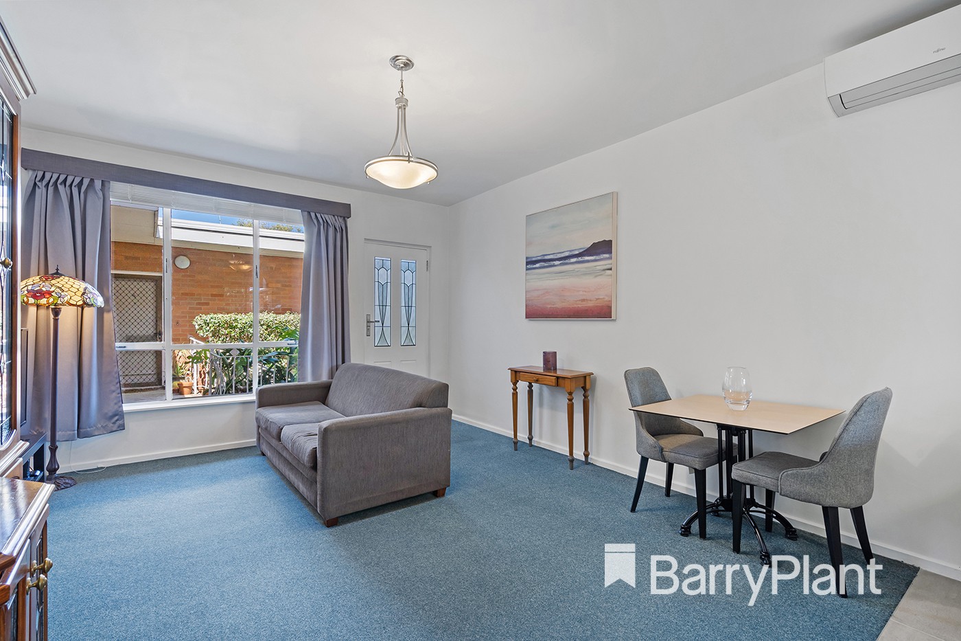 Additional features include a stained glass panelled front door, Fujitsu split system unit in the living area and a shared rear courtyard round off this appealing home.